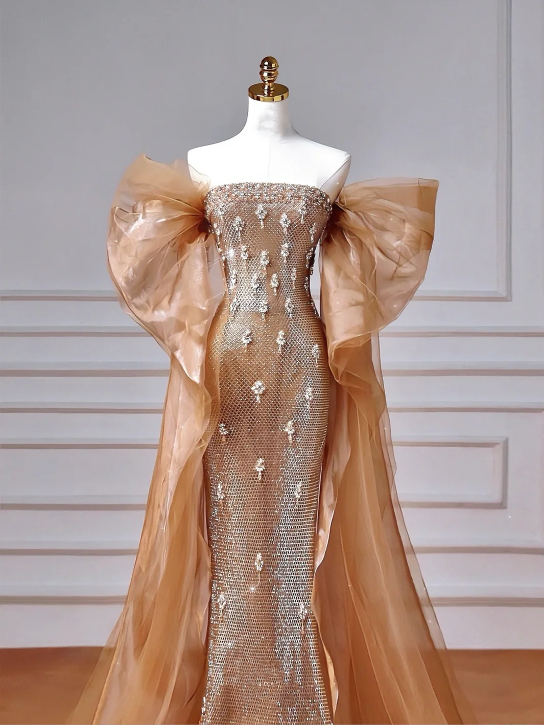 Luxury Off The Shoulder Tulle Beaded Prom Dress Long Mermaid Evening Dress Y8610