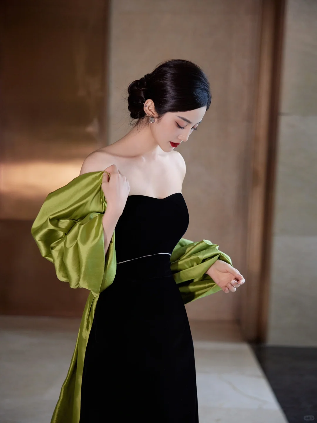 Pretty Black Strapless Satin Long Prom Dress Evening Dress With Bow Y8594