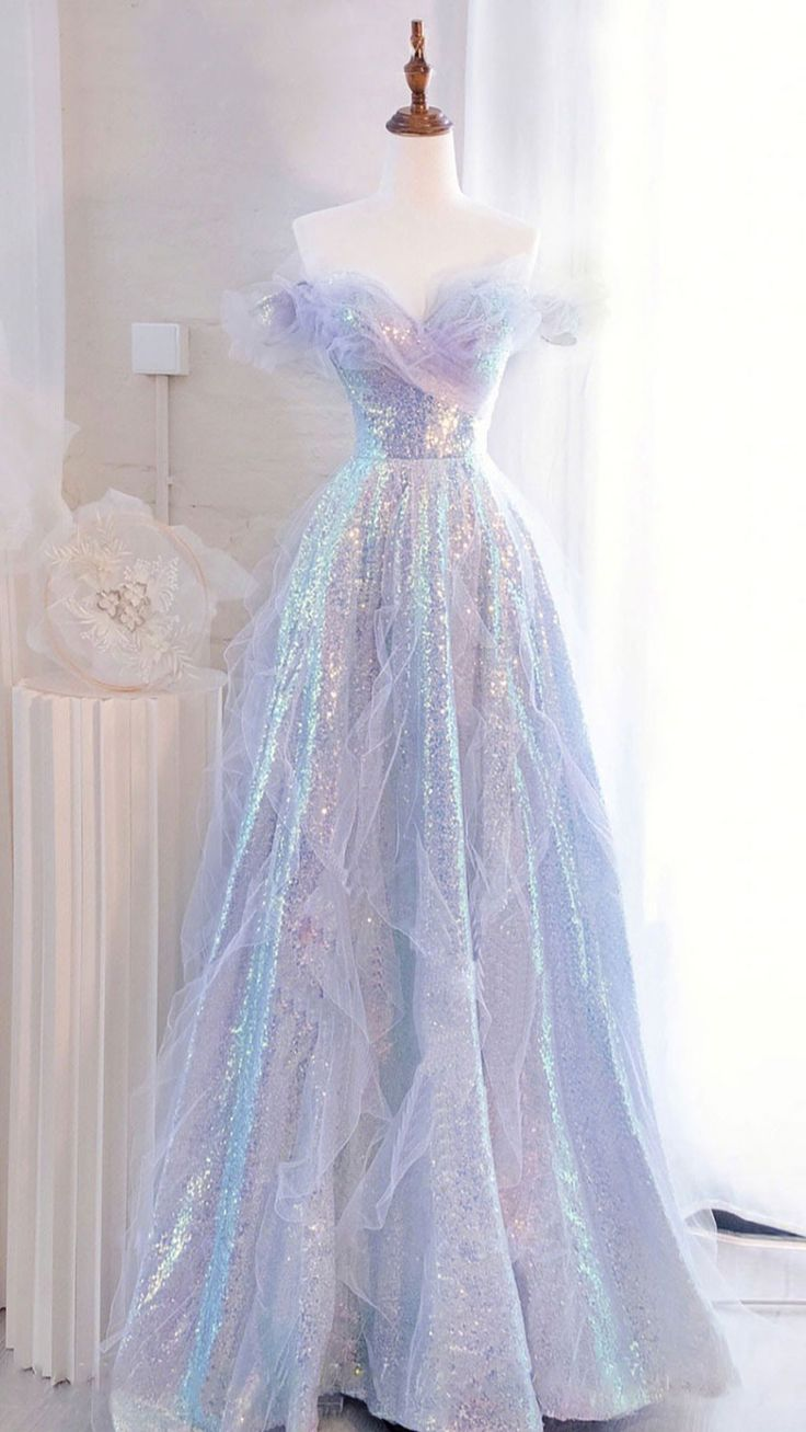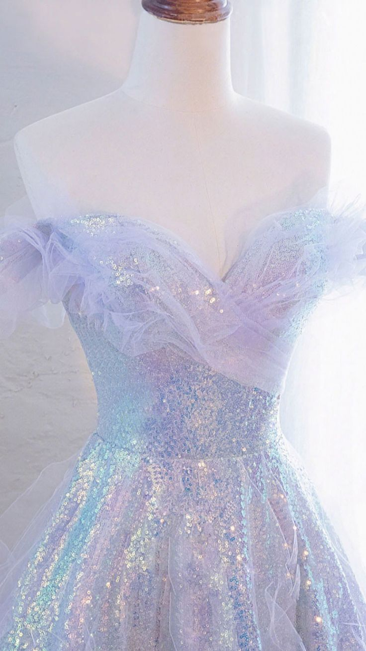 Purple Off Shoulder Sequin Tulle Long Prom Dress Purple Formal Evening Dresses Y4451