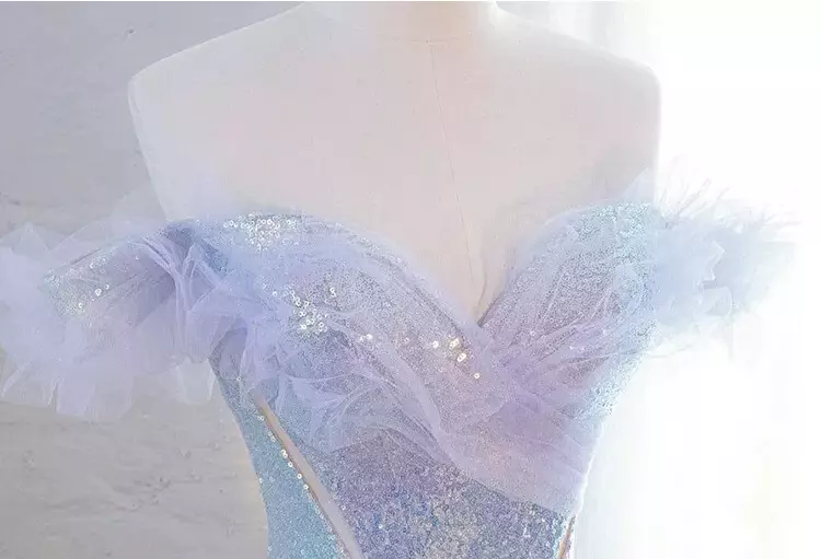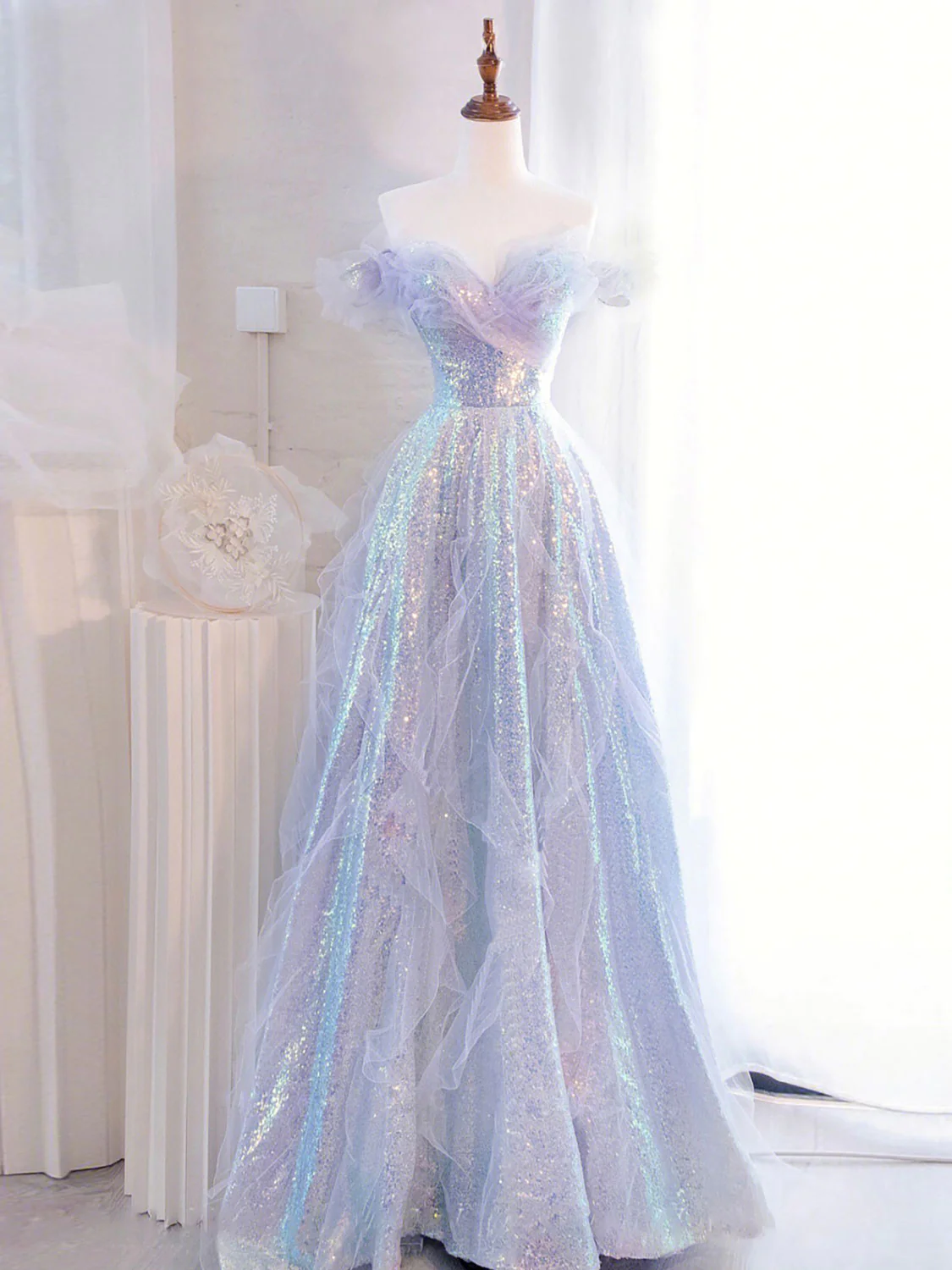 Purple Off Shoulder Sequin Tulle Long Prom Dress Purple Formal Evening Dresses Y4659