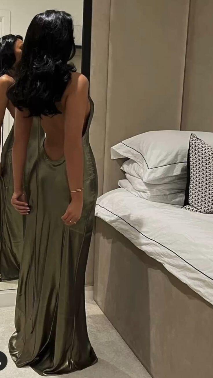 Sexy Olive Green Backless Evening Dress Olive Green Gala Dress Y7400