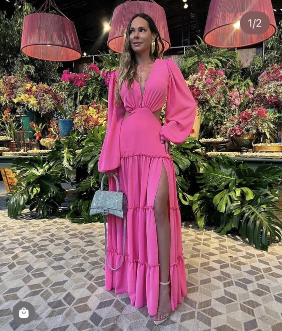 Modest A-line V Neck Long Sleeves Evening Dress With Split Y7178