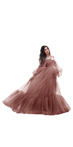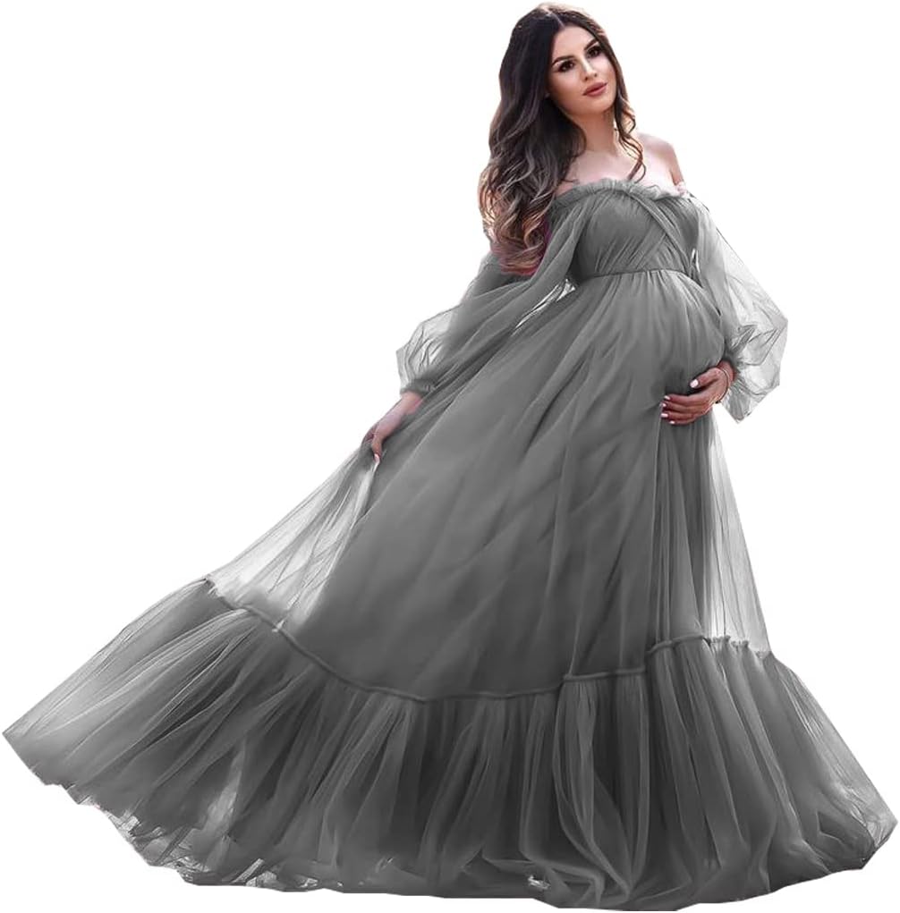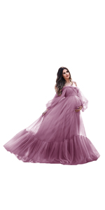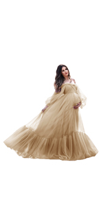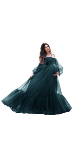 Puffy Sleeve Maternity Dress Tulle Robe for Photoshoot Off Shoulder Pregnancy Baby Shower Gown