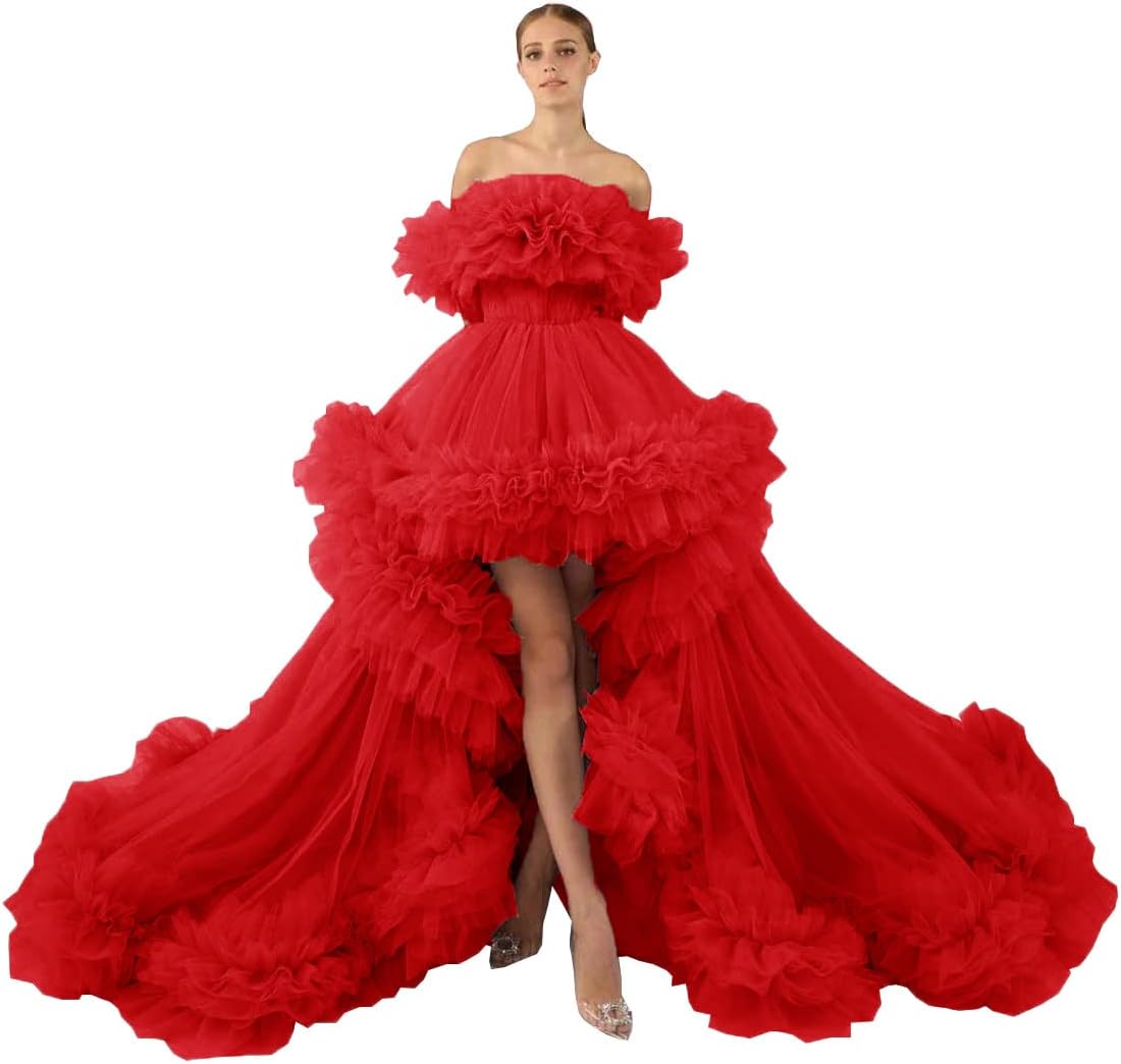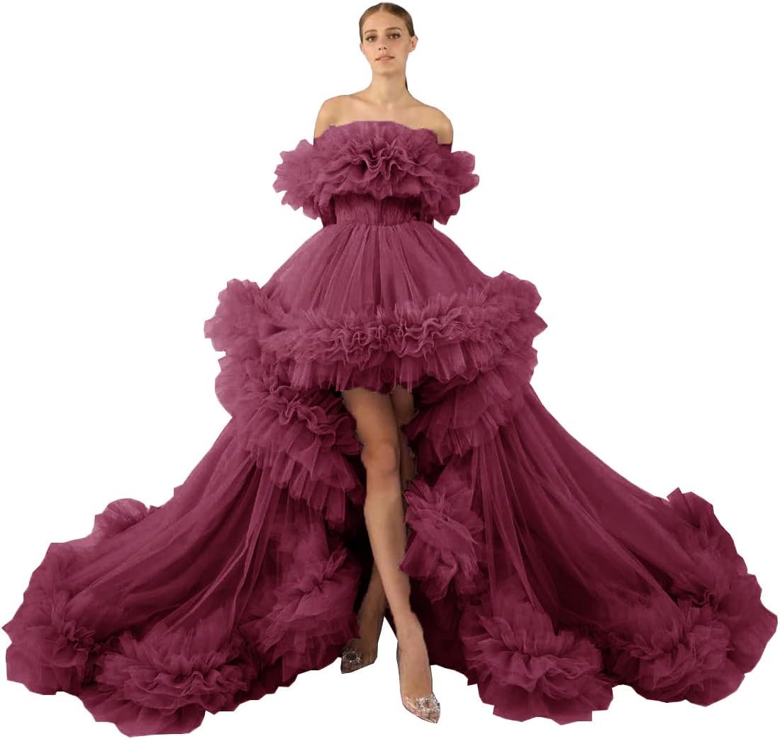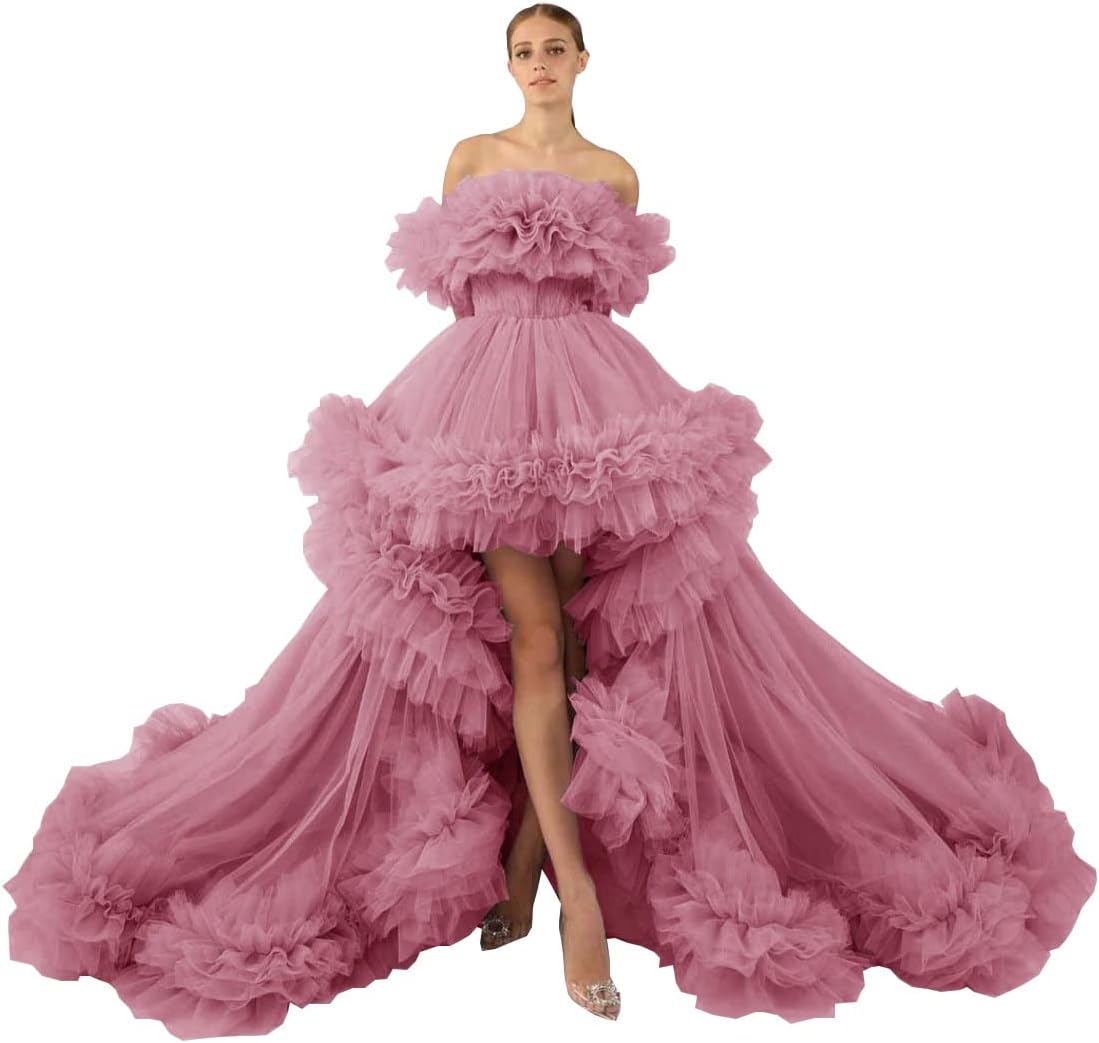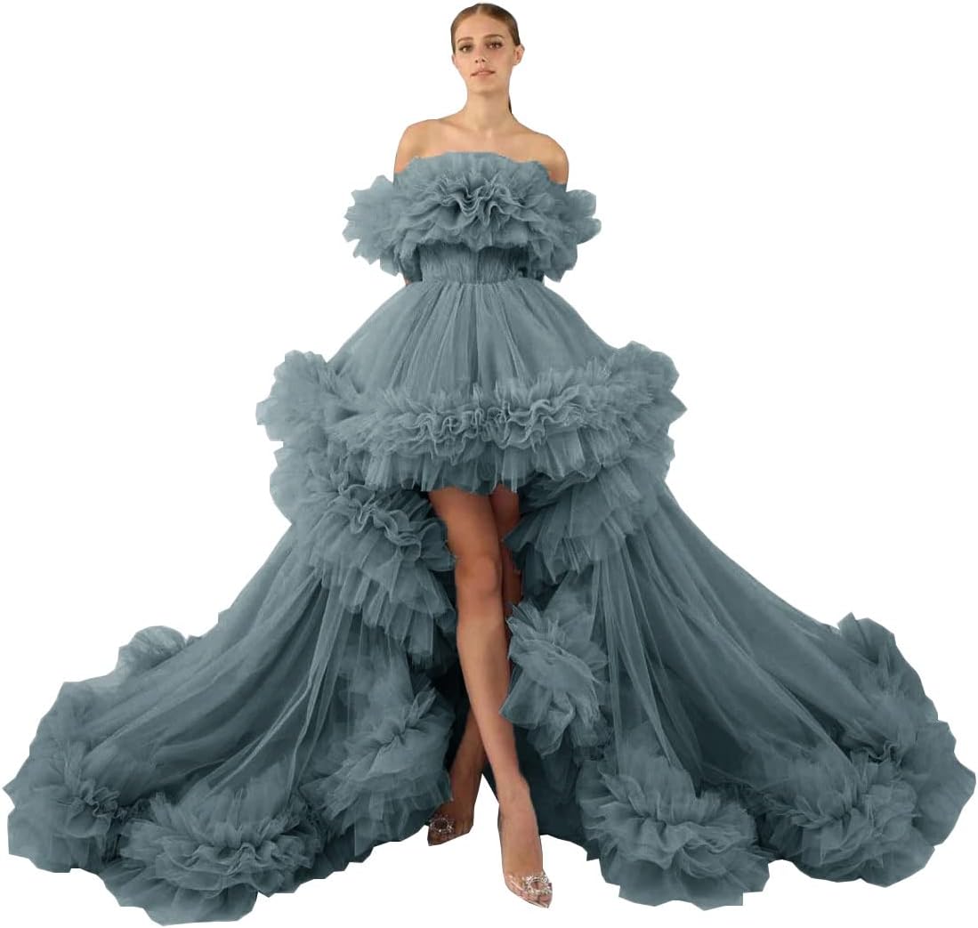 Women's Puffy Ruffles Off Shoulder Tulle Robe for Maternity Photoshoot 2025