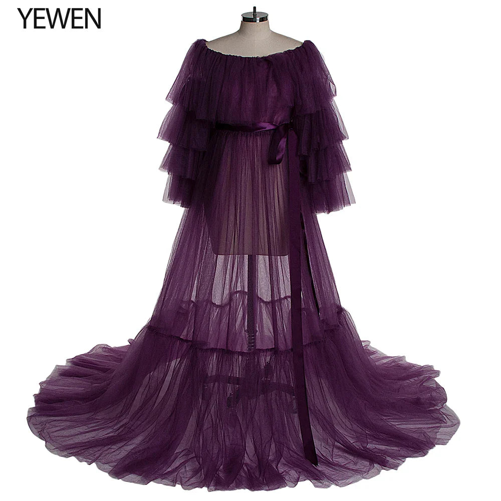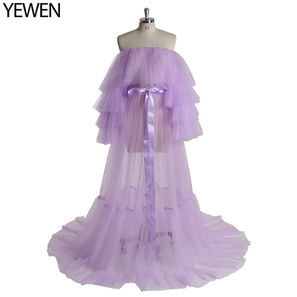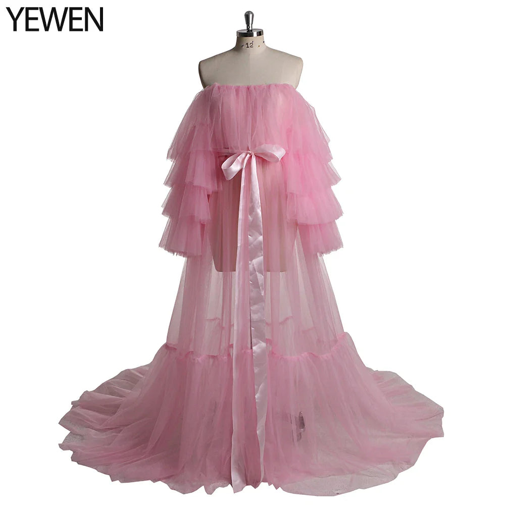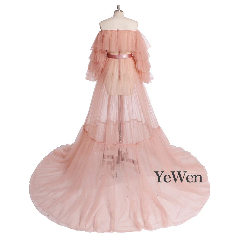 Sexy Pink Long Maternity Photography Props Dresses Tulle Perspective Pregnancy Mesh Maxi Gown For Pregnant Women Photo Shooting