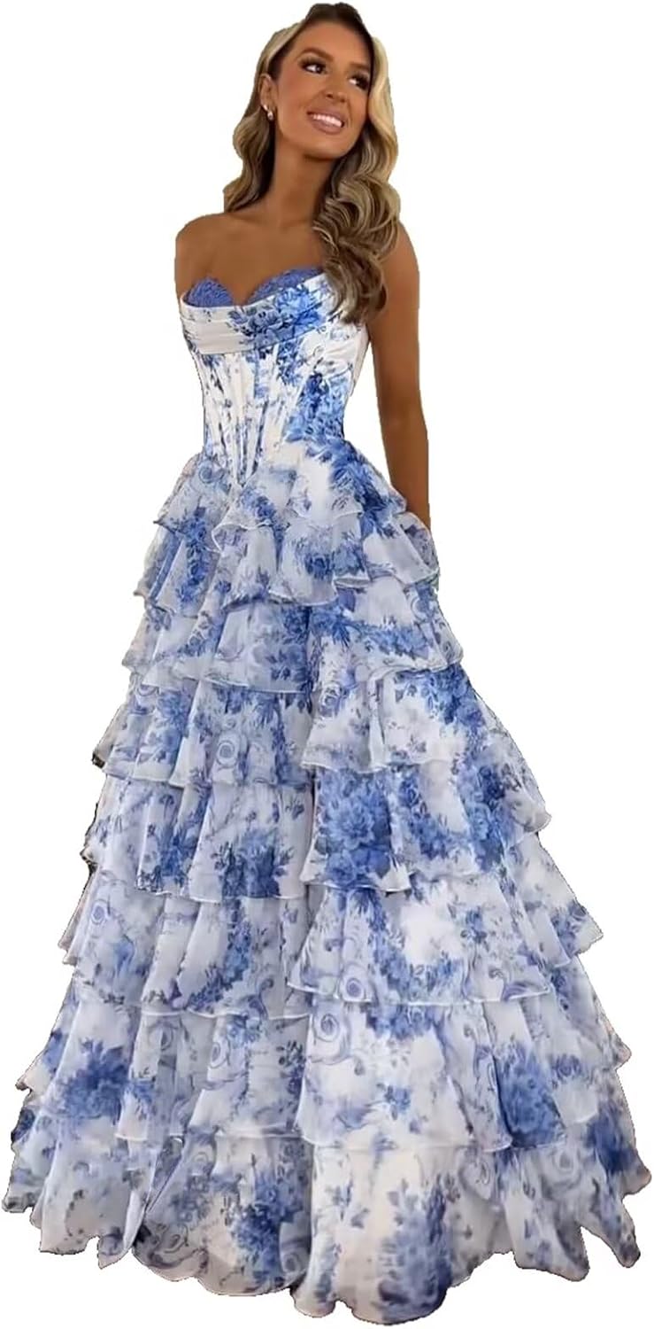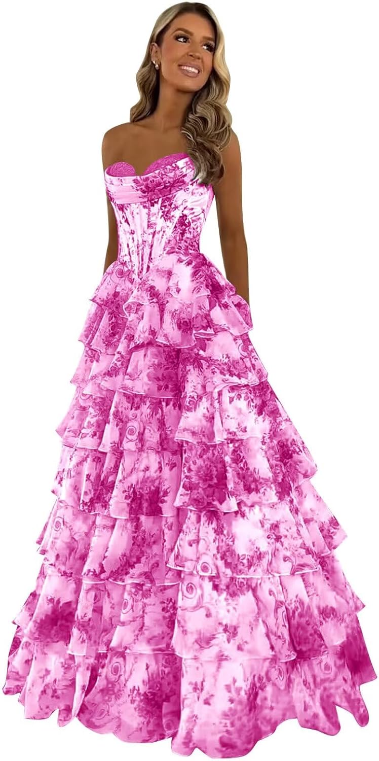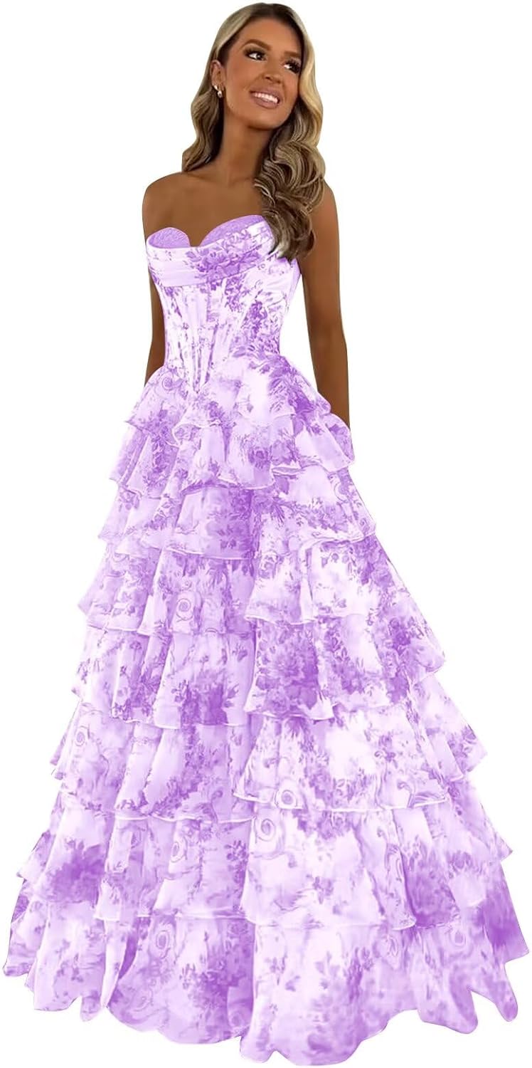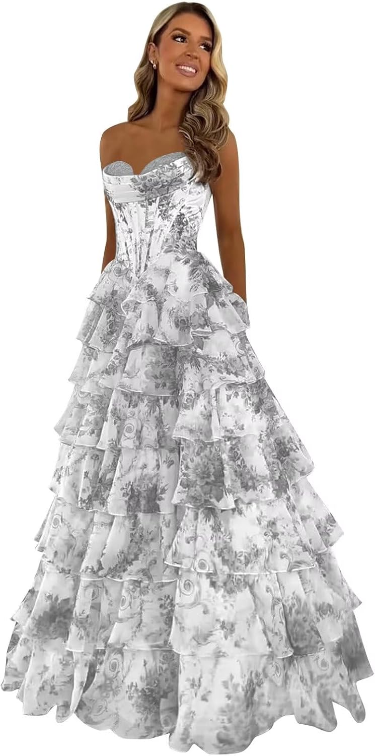 real photo of Strapless Corset Tiered Prom Dress 2025 Long Chiffon for Women