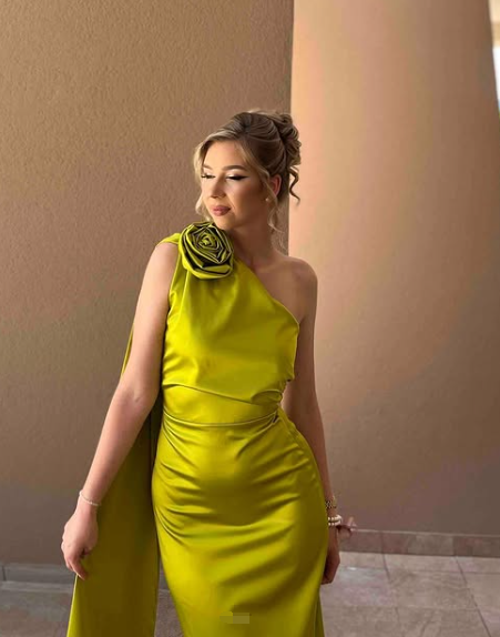 Sexy Sheath Long Party Prom Dress Olive Green One Shoulder Prom Evening Dress Y8009