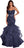 Vintage Navy Blue Chiffon Ruched Evening Gown Mermaid Party Prom Dress Y8076