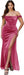 Pink Boat Neck Prom Dress Long Sleeves High Slit Satin Evening Dress Buttoned Cuffs Sheath Formal Party Dress Y4875