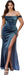 Teal Sheath Silk Satin Beaded Strapless Prom Dresses With Slit, Party Dress