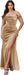 Stunning Satin Side Slit Evening Dress One Shoulder Pleated Long Party Dress