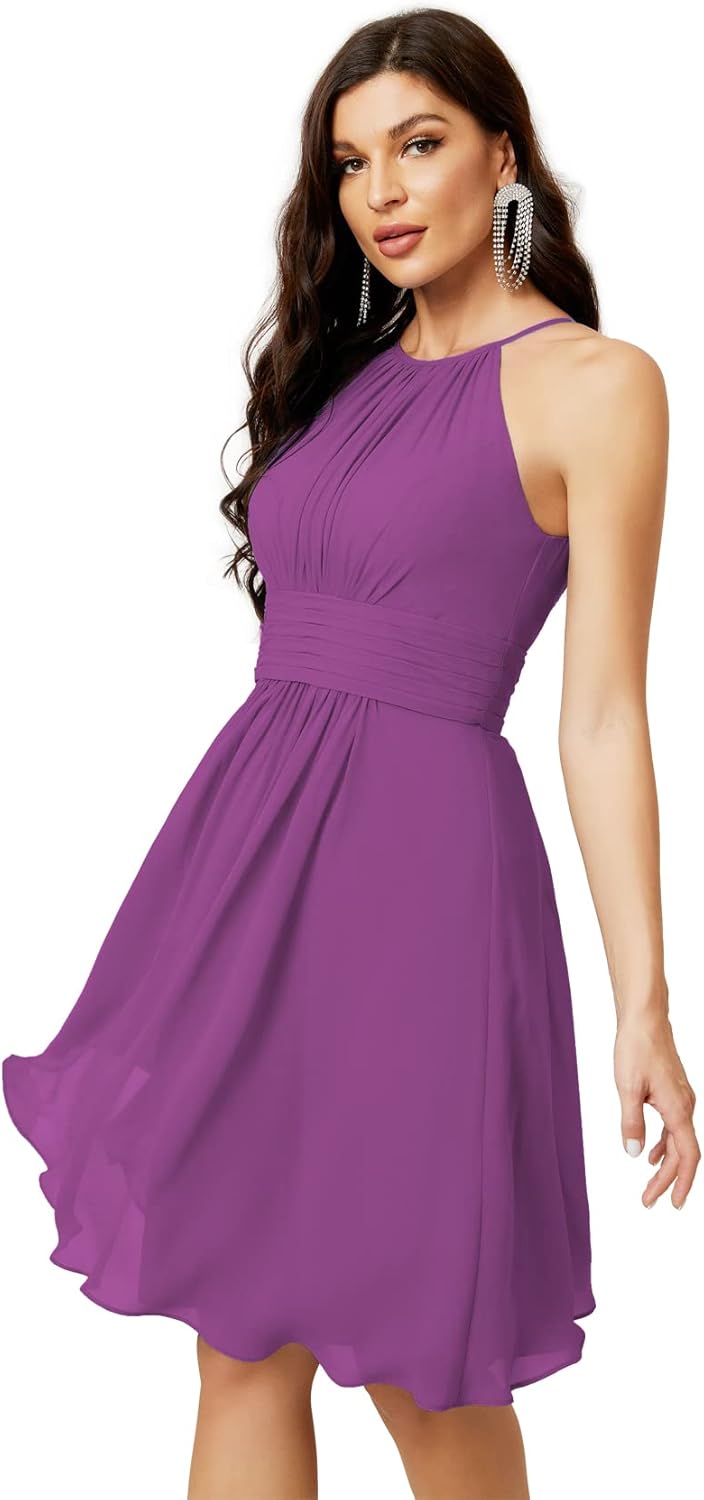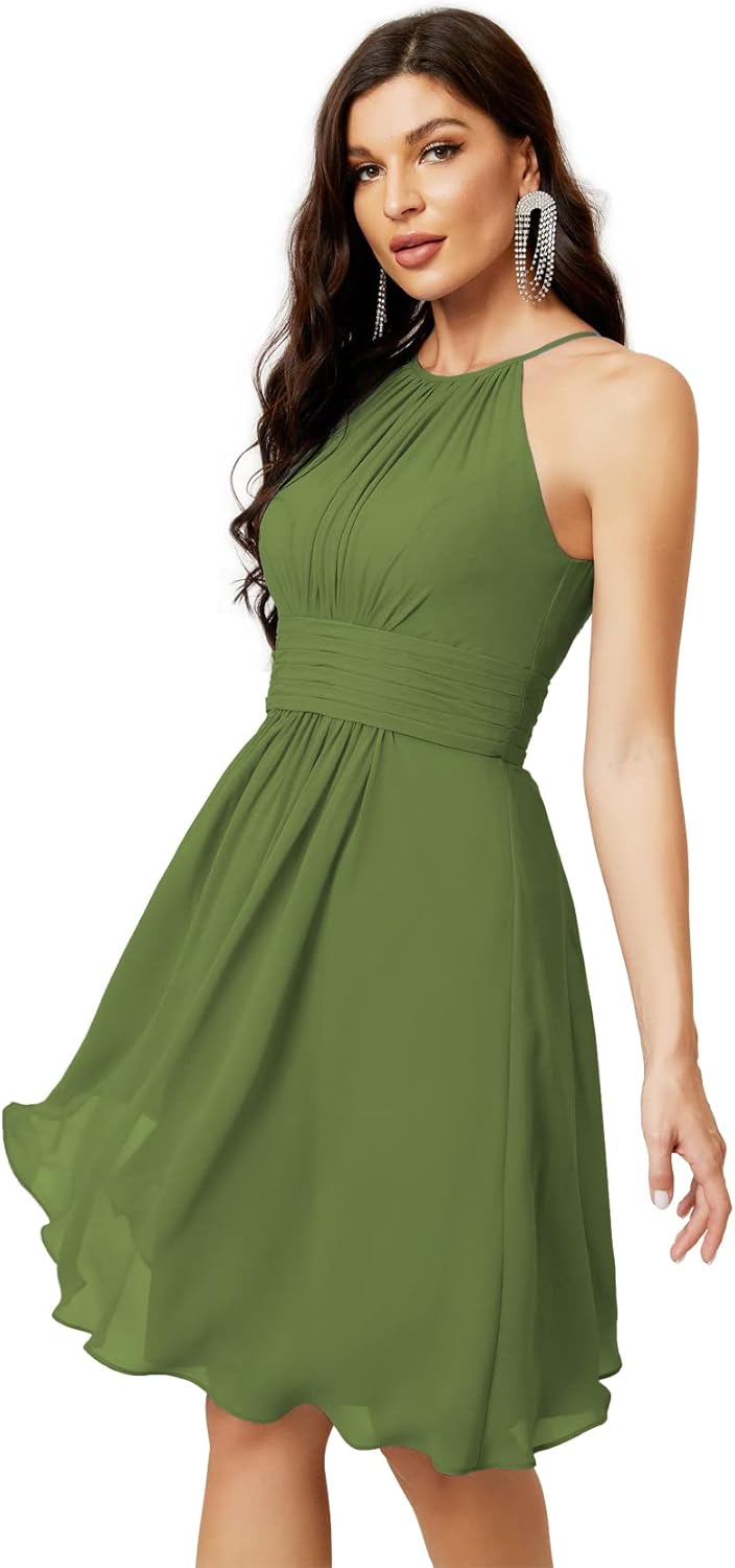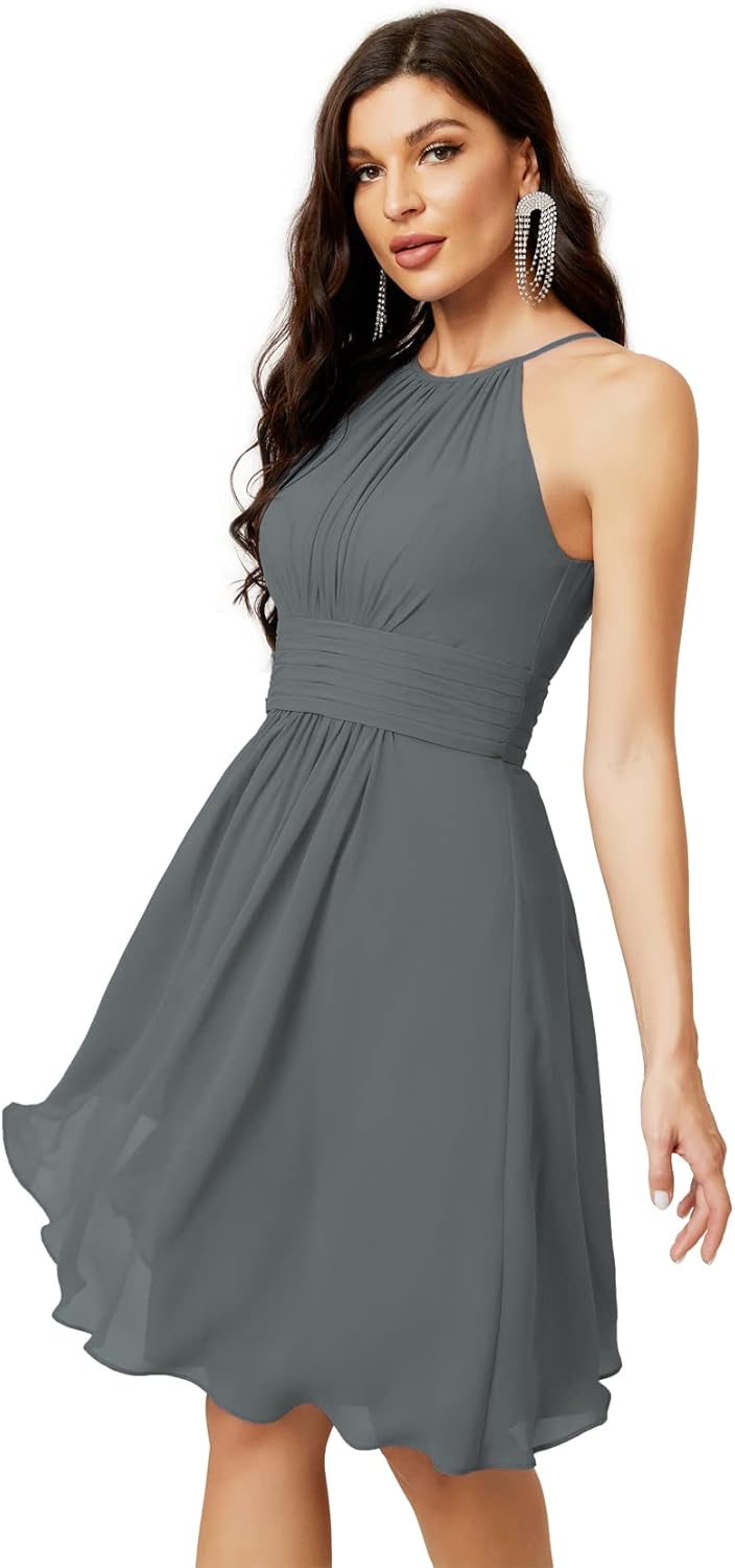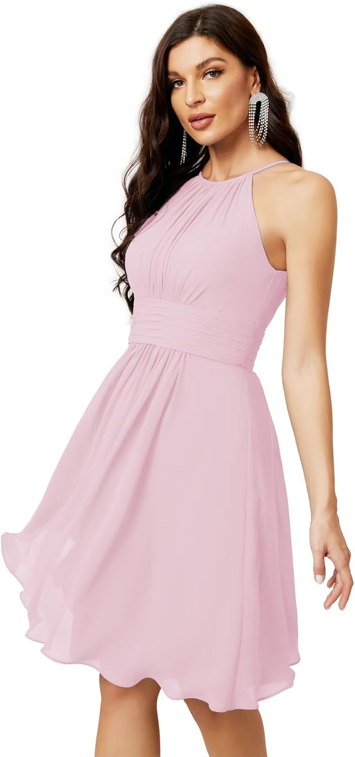 Sunnderly Short Halter Top Chiffon Bridesmaid Dresses Tea Length A Line Formal Evening Party Cocktail Dress Dusty Rose