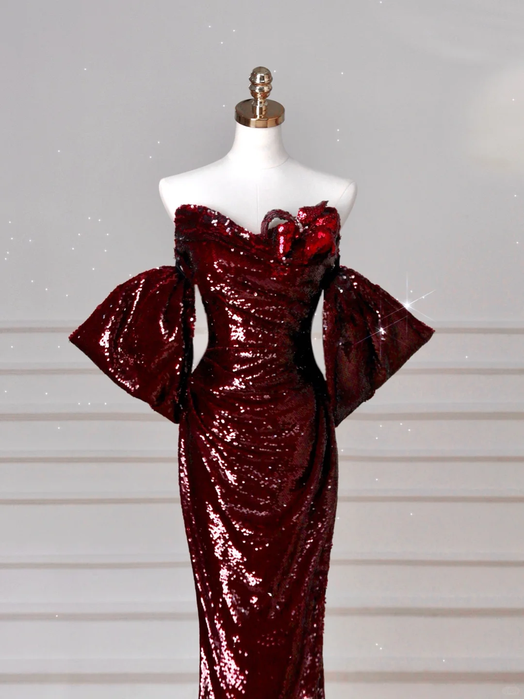 Charming Burgundy Off The Shoulder Sequins Mermaid Prom Dress Evening Dress Y8639