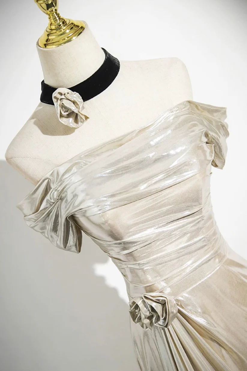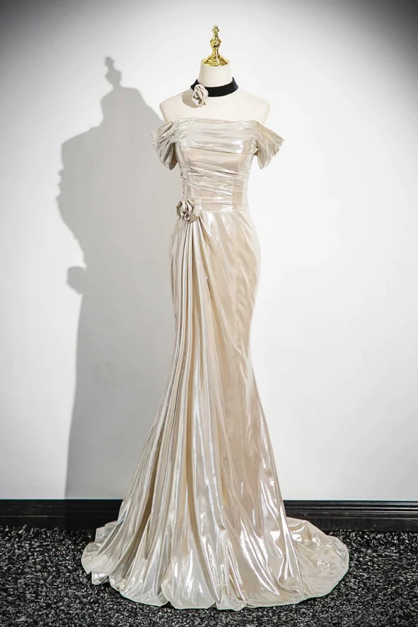 Charming Champagne Off The Shoulder Satin Prom Dress Mermaid Evening Gown Y8202