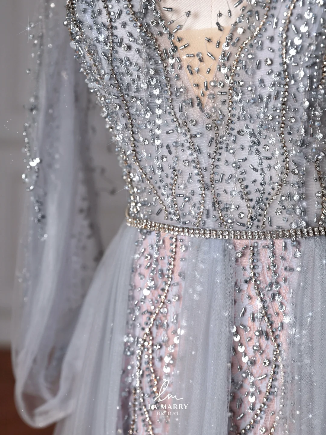 Classy Blue V Neck Sequins Beaded Tulle Prom Dress A Line Backless Evening Dress Y8644
