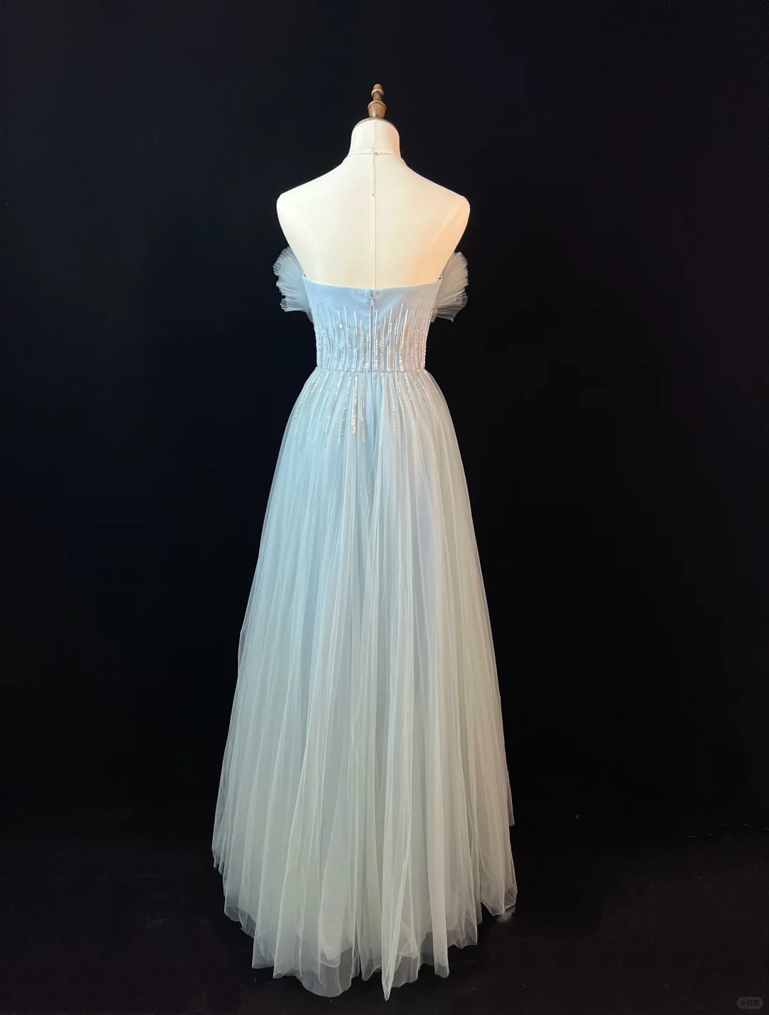 Elegant Blue Tulle Sequins Beaded ALine Prom Dress Evening Dress Y8646