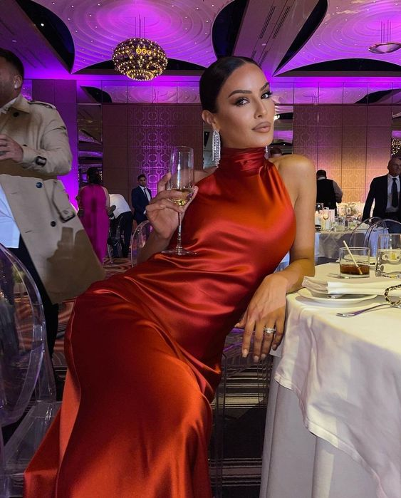 Elegant High Neck Long Evening Dress Simple Evening Gown Y7345