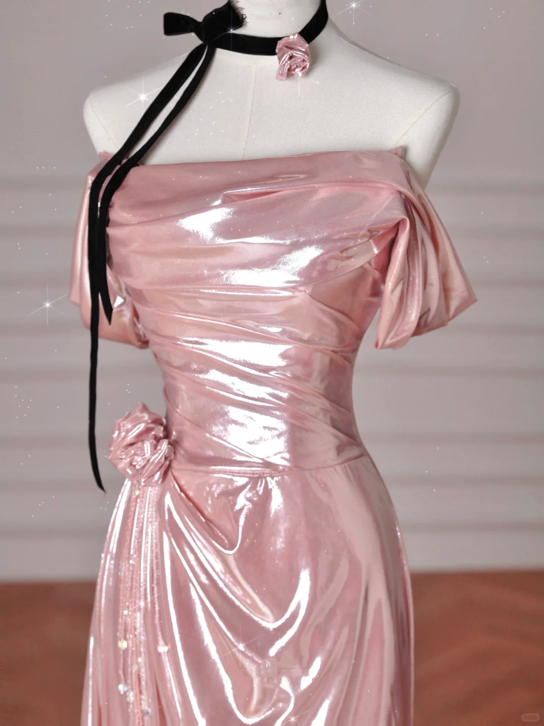Gorgeous Pink Off The Shoulder Satin Mermaid Long Prom Dress Evening Dress Y8630