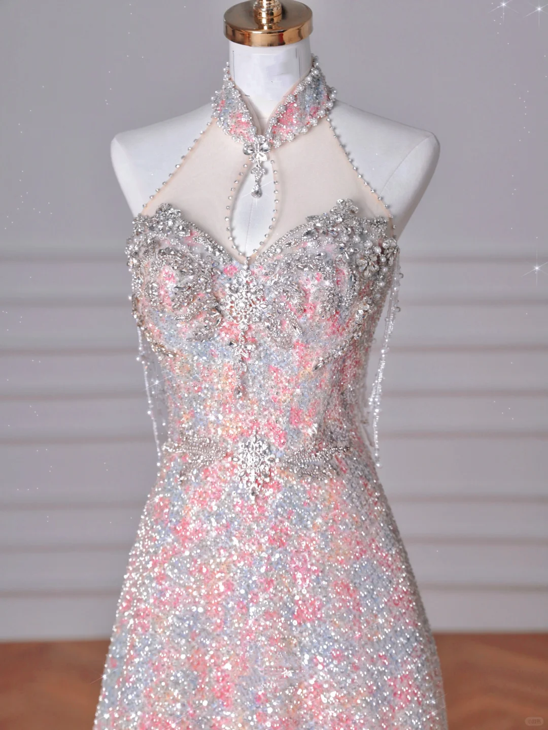 Gorgeous Pink Sequin Beaded ALine Prom Dress Evening Dress Y8637