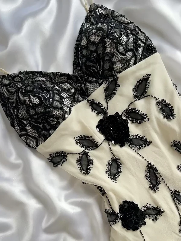 Pretty Ivory Chiffon Lace Beaded Prom Dress Mermaid Long Evening Dress Y8305