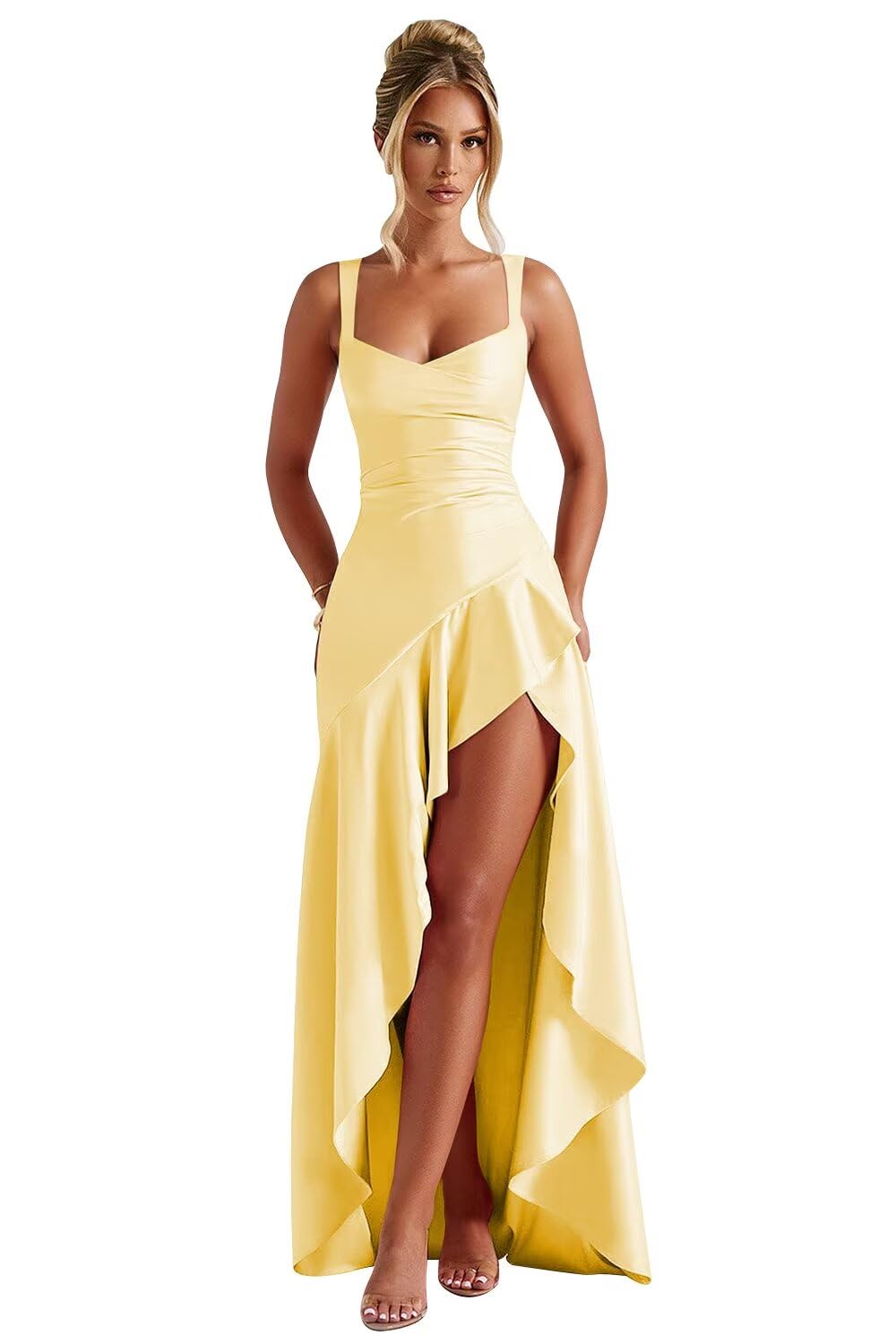 Satin Ruffles Prom Dresses for Teens Hi-Low Aline Cocktail Dresses for Women QA204