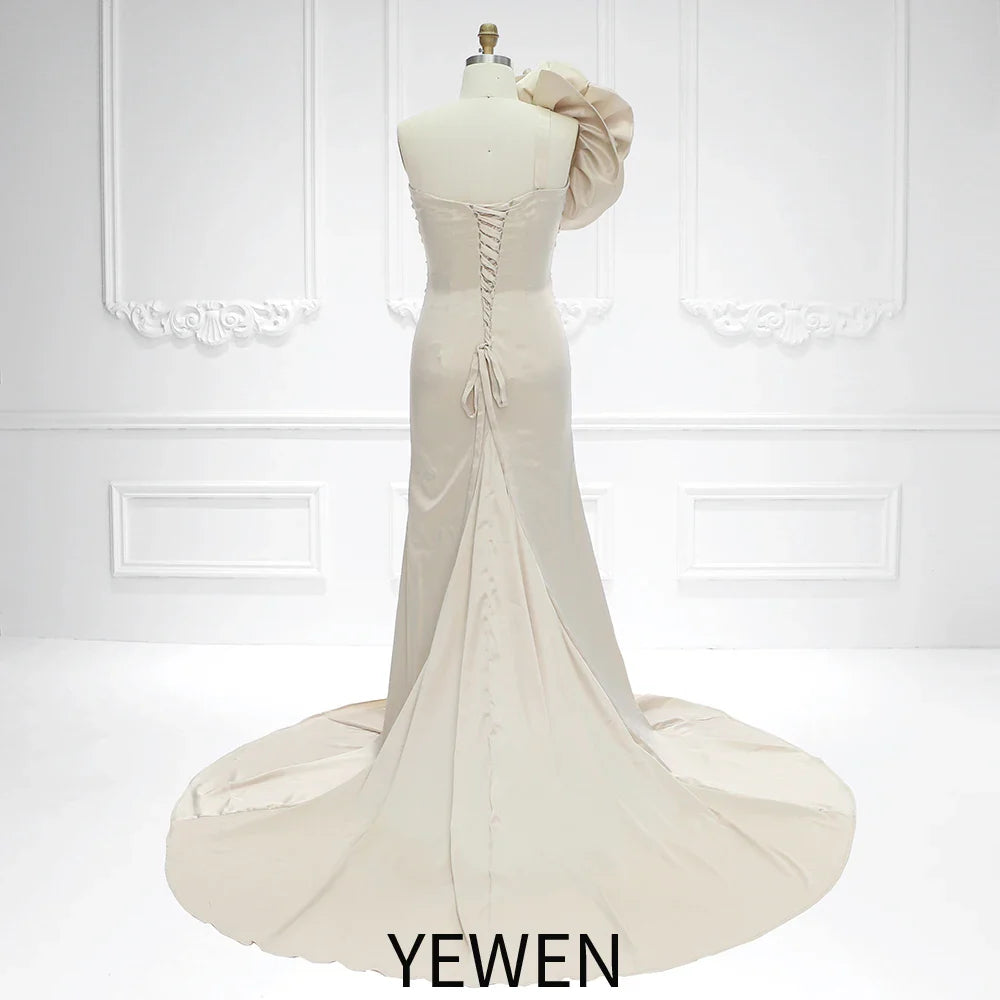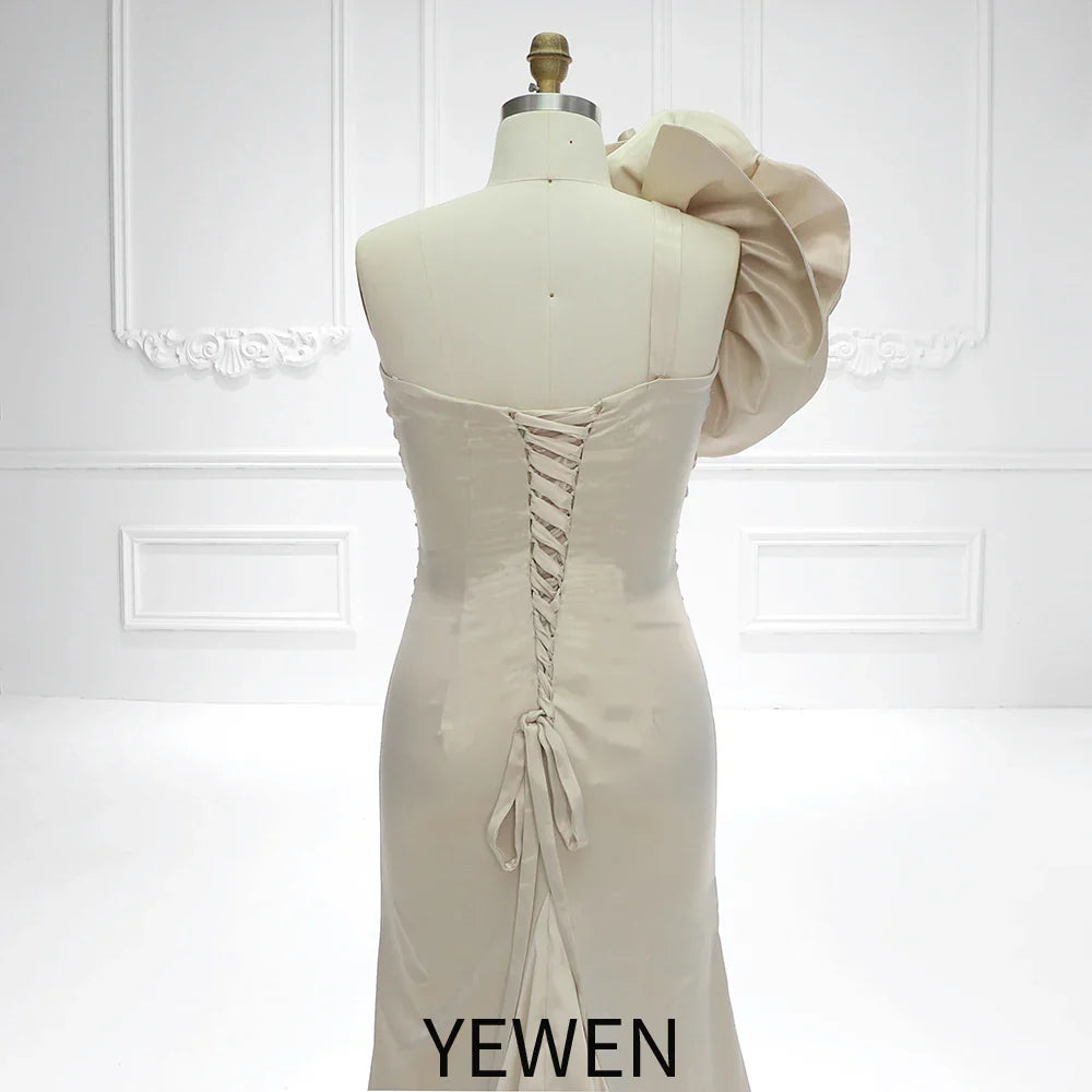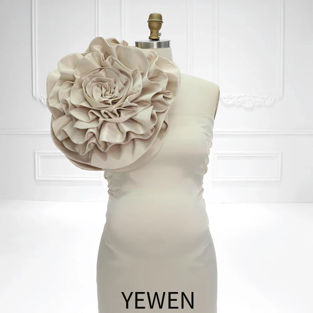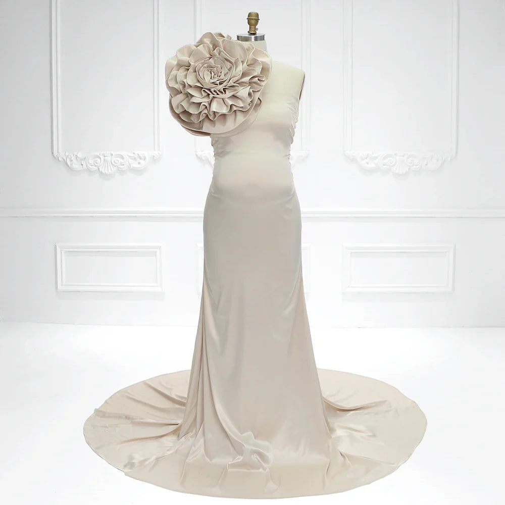 Embrace the beauty of motherhood with this chic blossom satin stretchy maternity Gown. Designed with the glowing expectant mother in mind, this gown is a celebration of elegance and comfort. The mermaid style gown, crafted from stretchy satin, gently hugs your curves, providing both support and a flattering outline. A standout feature is the oversized floral embellishment resting on the shoulder, adding a touch of whimsy and charm to this classic piece. The gown's tail flows into a gentle pool of fabric, creating an ethereal effect perfect for those tender moments captured on camera. Whether it¡¯s for a baby shower or a professional photoshoot, this gown is designed to make you feel as beautiful as the journey you¡¯re on.